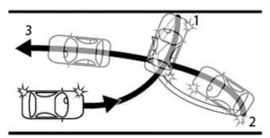 - egyet az előremenetben történő a 90º-os parkolási manőverek feladatai közül (Manőverek 1–2),